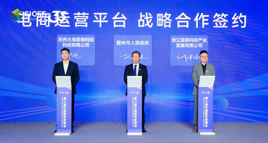 在电商基地计谋签约典礼中,霸州市政府与浙江菜根科技产业发展有限公司、苏州大海星橙相聚科技有限公司进行了电商运营平台计谋协作签约,胜芳产品电商基地与天津市跨境电子商务协会、泛鼎国际集团、Eruwise Exhibition、百世快运、迈富时集团、霸州培裕通供应链进行了跨境电商产业计谋定约签约。签约条约涵盖产品供应链对接、直播电商运营、东谈主才培育、物发配套等多个界限,全见识搭建电商产业生态闭环。