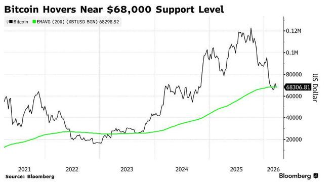 在68,000好意思元这一关键水平,比特币正踯躅在其200周指数移动均线近邻——这是这项加密货币钞票一条具有伏击表情意旨的趋势线。